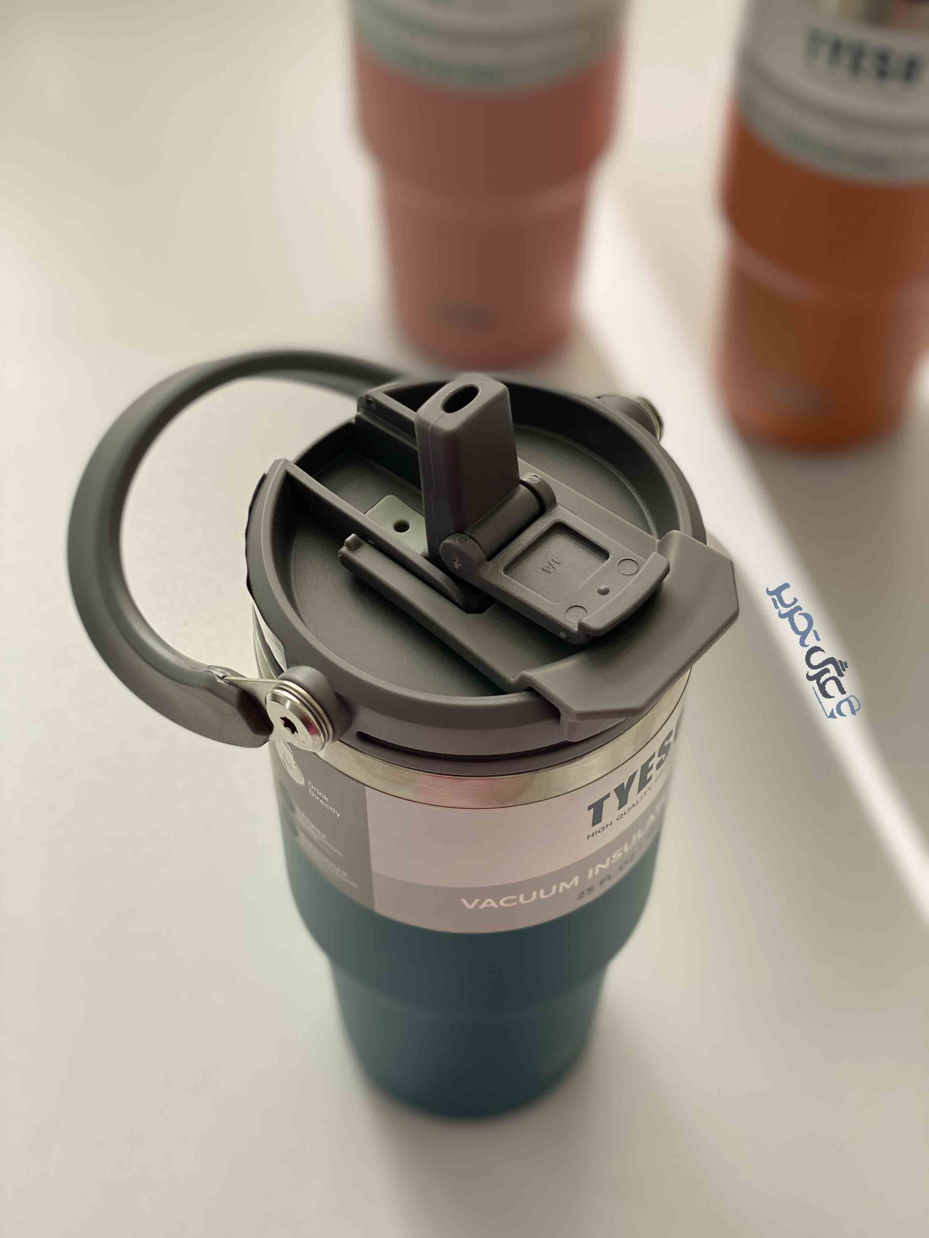 درب اصلی پیچی و ضدنشت این ماگ از دیگر ویژگیهای برجسته آن است. مکانیزم قفلشونده درب، امنیت حمل را افزایش میدهد. همچنین طراحی ارگونومیک آن باعث شده بهراحتی در دست قرار بگیرد یا در جالیوانی خودروها جا شود.