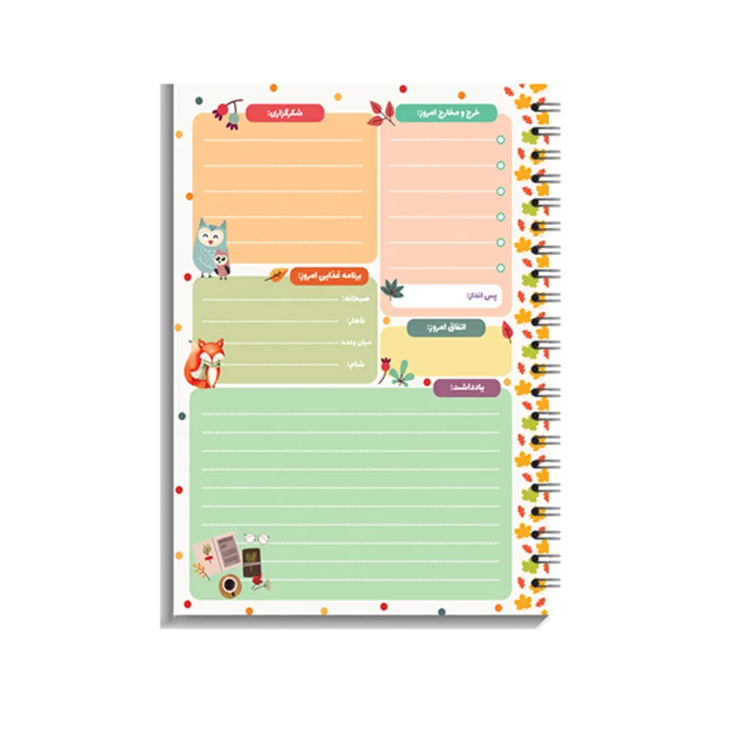 آیا آمادهاید تا روزهای پاییزیتان را سازماندهی کنید؟ با پلنر آ۵ روزانه پاییز آبرنگ، هیچ برنامهای از دستتان نمیرود! طراحی شیک و الهامبخش آبرنگی این پلنر، نه تنها به جلسات و کارهای روزانه نظم میبخشد، بلکه زیبایی خاصی به میز کارتان اضافه میکند. همین حالا پلنر خود را تهیه کنید و بهرهوریتان را افزایش دهید! 🍁📅