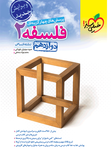 کتاب پرسشهای چهارگزینهای فلسفه دوازدهم خیلی سبز به بررسی خط به خط کتاب درسی پرداخته و بیش از 950 تست را تحلیل کرده است. این جامعیت باعث میشود که دانشآموزان با خیال راحت از کتاب برای آمادگی امتحان نهایی و کنکور استفاده کنند. لحن کتاب رسمی است و در بعضی قسمتها برای توضیح بیشتر محاورهای میشود. در فهرست نام هر درس بهاضافه شماره صفحه درسنامه و تست نوشته شده است. بعد از توضیح درسنامه سریع به سراغ زدن تست میرویم که به تفهیم مطالب کمک میکند. در بخش پایانی فهرست هم پاسخنامه تشریحی و کلیدی قرار دارد. در ادامه به بررسی کتاب فلسفه دوازدهم تست خیلی سبز اثر حمید سودیان طهرانی و محمد جواد سهدهی میپردازیم. طرح جلد کتاب فلسفه 12 تست خیلی سبز ساده اما مفهومی است. این کتاب با کاغذ سفید و در قطع رحلی چاپ شده است. ترکیب رنگ به کار رفته در متن طوسی و صورتی میباشد. تنها تصویر کتاب، چهره دو فیلسوف است که در ابتدای هر درس میبینیم. فونت و فاصله بین خطوط بهخوبی رعایت شده است. در مجموع کتاب از نظر ظاهری دارای جذابیت خاصی نیست و بیشتر بر ارائه محتوای غنی تکیه دارد. کتاب فلسفه دوازدهم تست خیلی سبز با داشتن درسنامه خط به خط کتاب درسی و بانک تست جامع میتواند بهعنوان منبع اصلی برای امتحان نهایی و کنکور طی سال تحصیلی استفاده شود. ارائه مطالب در قالب جدول و نمودار، داشتن خلاصه درس، افزودن بخش از نگاه طراح برای آشنایی با دیدگاه طراحان سؤالات کنکور و نیز آوردن تستهای کمی دشوارتر، مهمترین نوآوریهای این کتاب است.